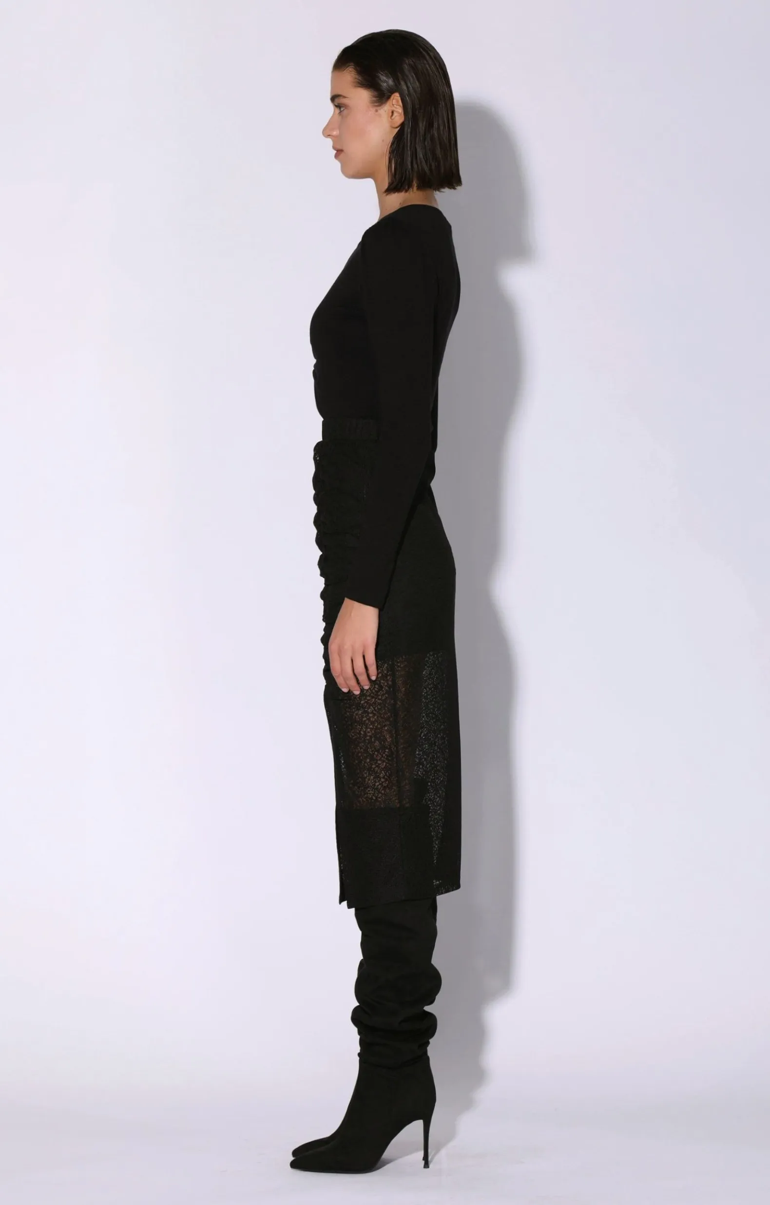 Downtown Vibes And Effortless Style Make The Stefana Skirt A Go To For Your Night Out. This Midi Length Skirt Showcases Short Lining, A High Slit, And Flattering Shirring Detail