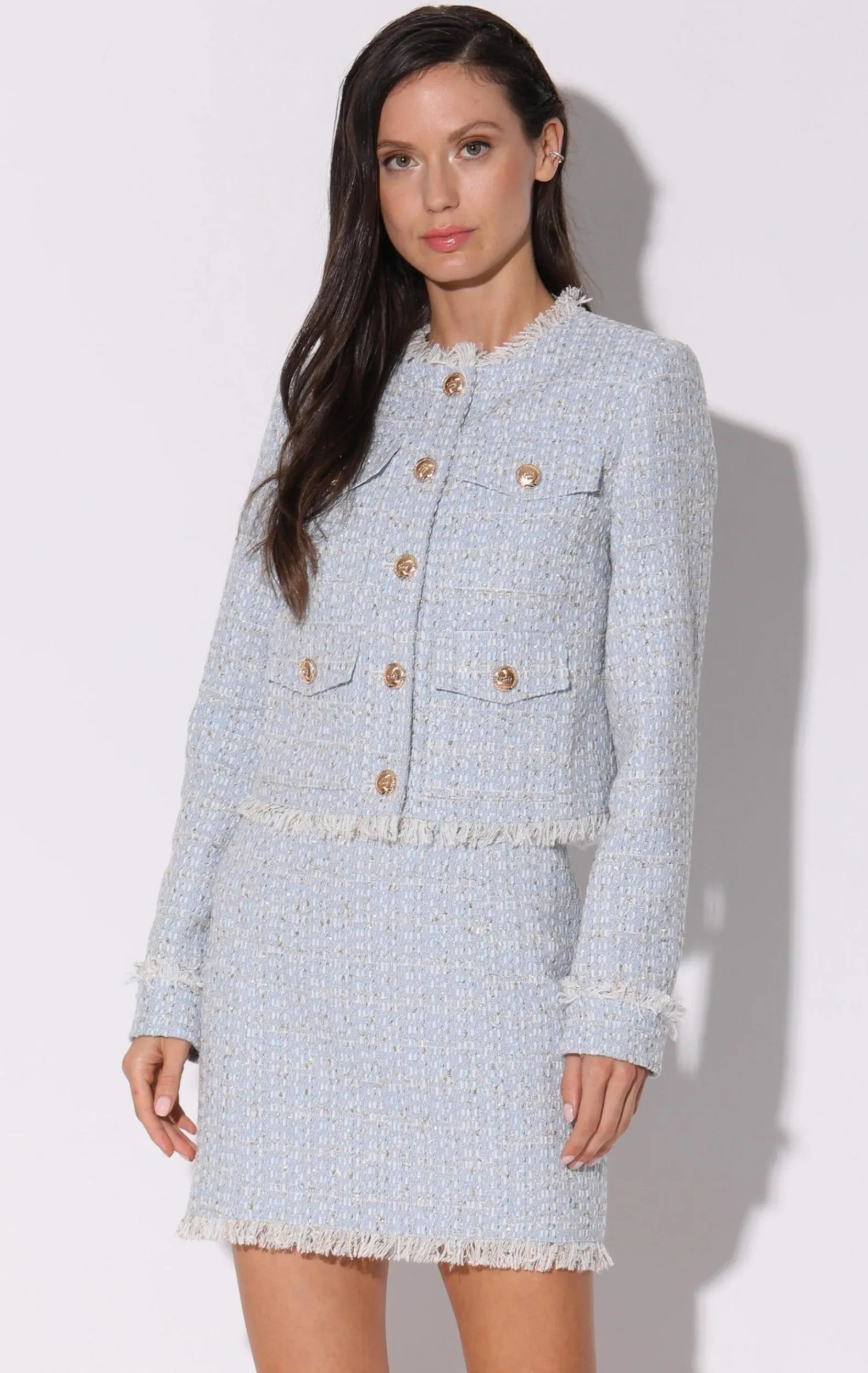 The Bennet Jacket Is A Cropped Jacket In Our Beautiful Tweed Fabric. It Features Front Pocket Details With Engraved Buttons And Can Be Worn As A Matching Look With The Barbara Dress