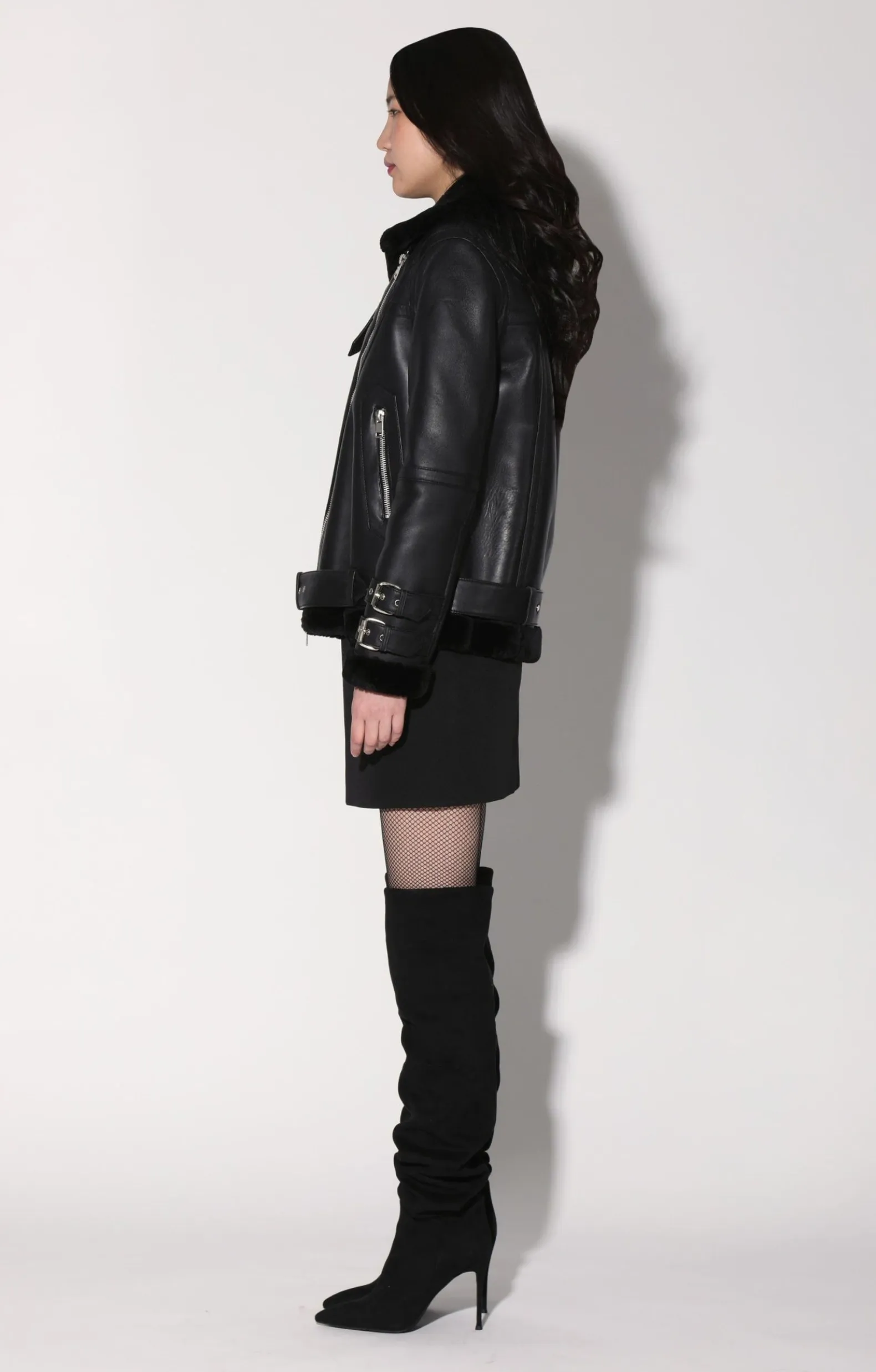 Jackets>Walter Baker Whitney Jacket, Black Leather/ Black Fur-Leather