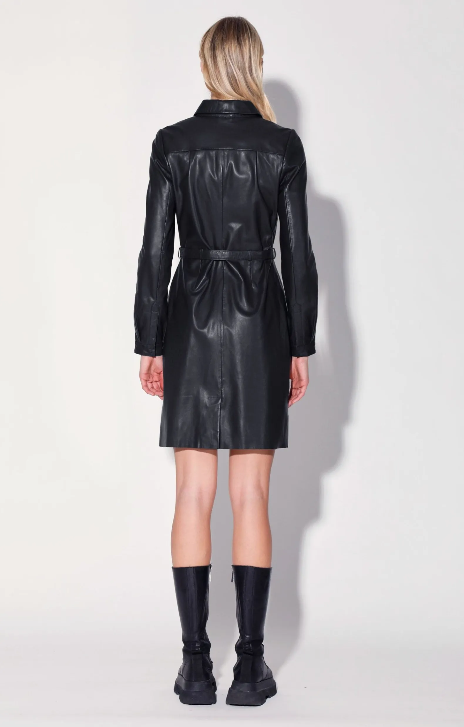 The Clara Dress Is A Slim And Sexy Take On The Shirt Dress. This Collared Button Down Leather Dress With Tie Waist Detail Will Bring Out Your Femme Fatale