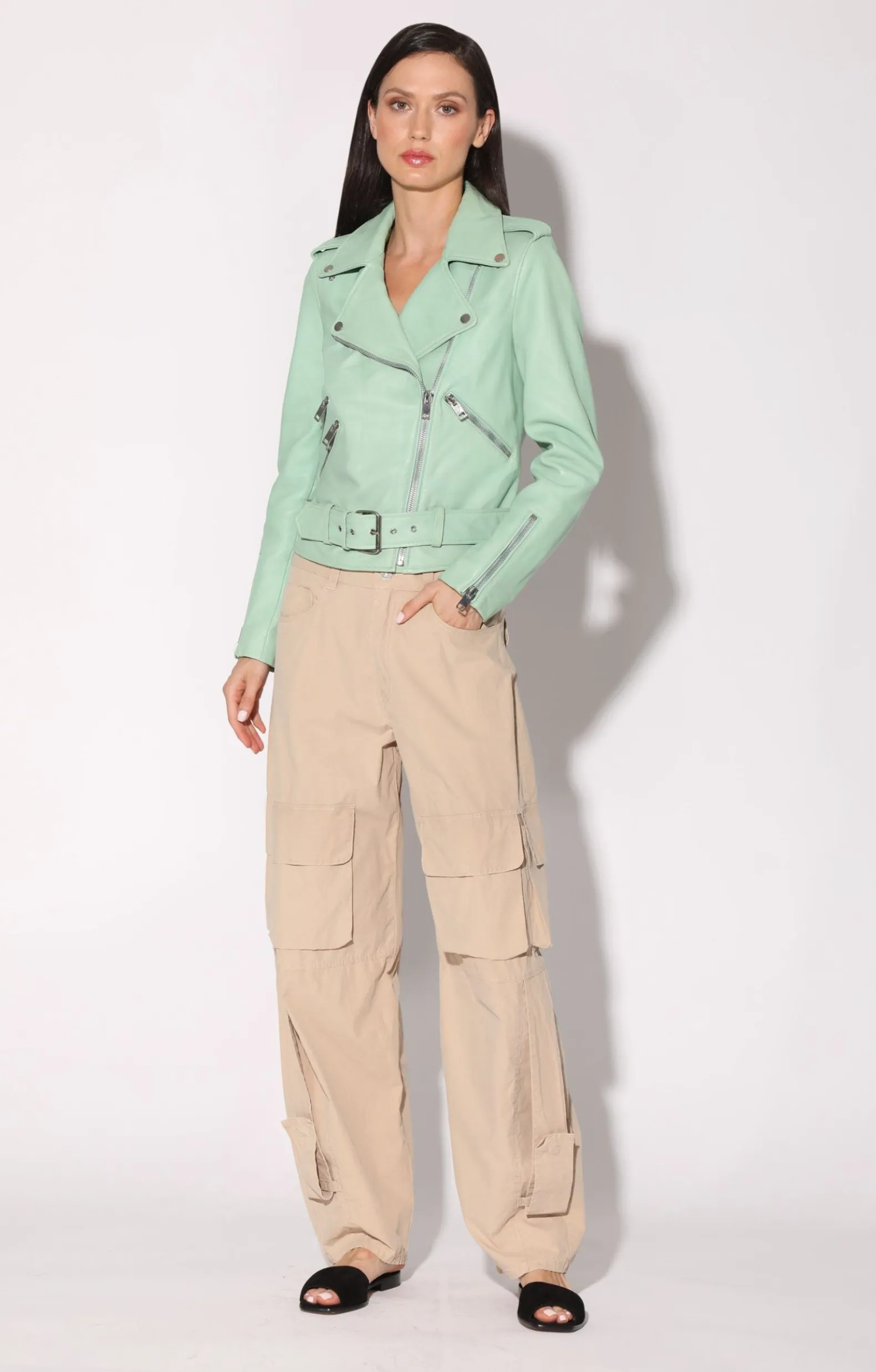 Jackets>Walter Baker Allison Jacket, Pistachio-Leather