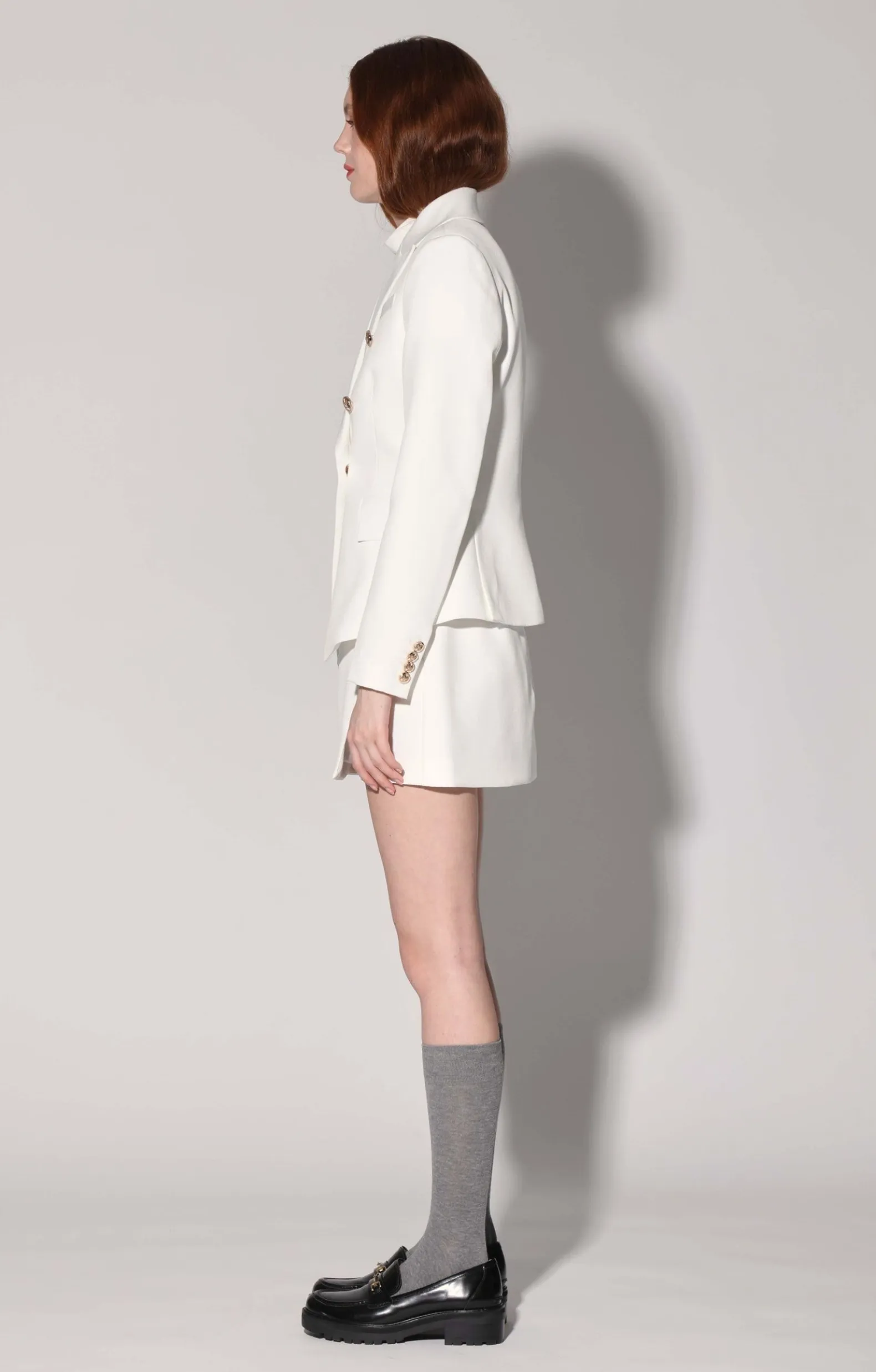 Double-Breasted Blazer; Engraved Buttons; Pockets With Flap Closure; Tapered Silhouette