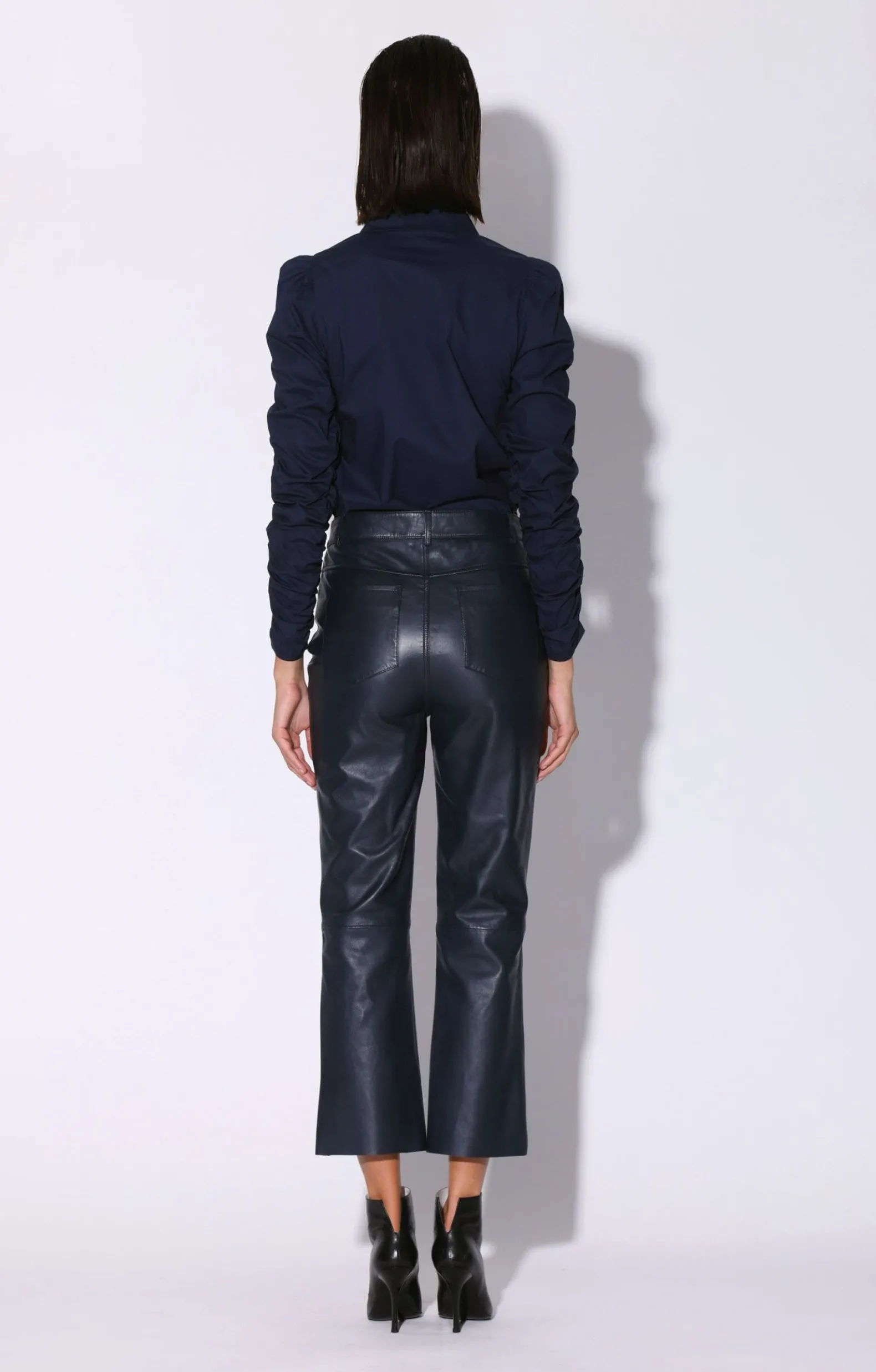 Collar With Button Down Front Closure; Long Sleeves With Puff Shoulder And Shirring Detail