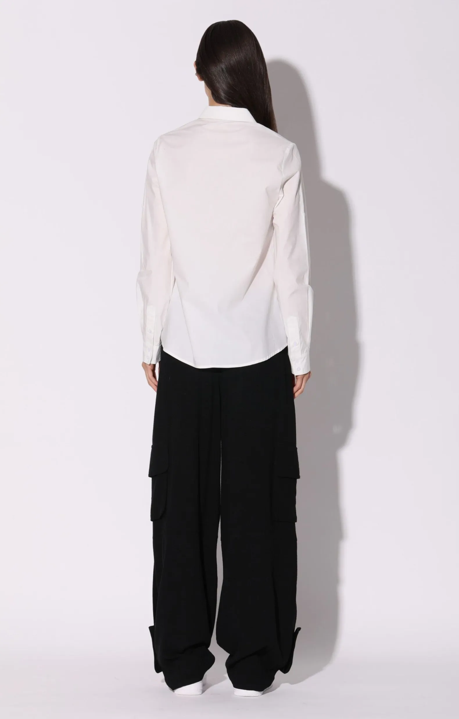 A Utility Style Button Down, The Marsha Top Features Front Chest Cargo Pockets And Roll Up Sleeve Option. Try It Tied In The Front For A Warmer Weather Update.