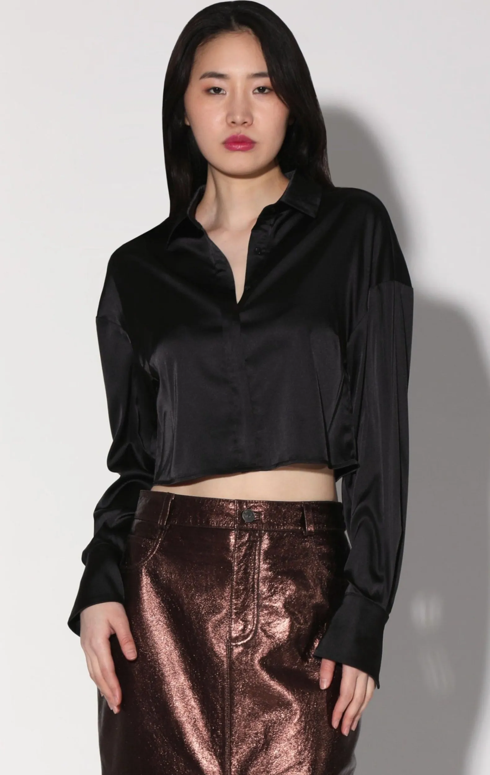 The Montana Top Is A Sassy Satin Update To The Classic Button Down With Its Crop Length, And Drop Shoulder. It’S Great On Its Own And Even More So With Our Satin Maisy Skirt