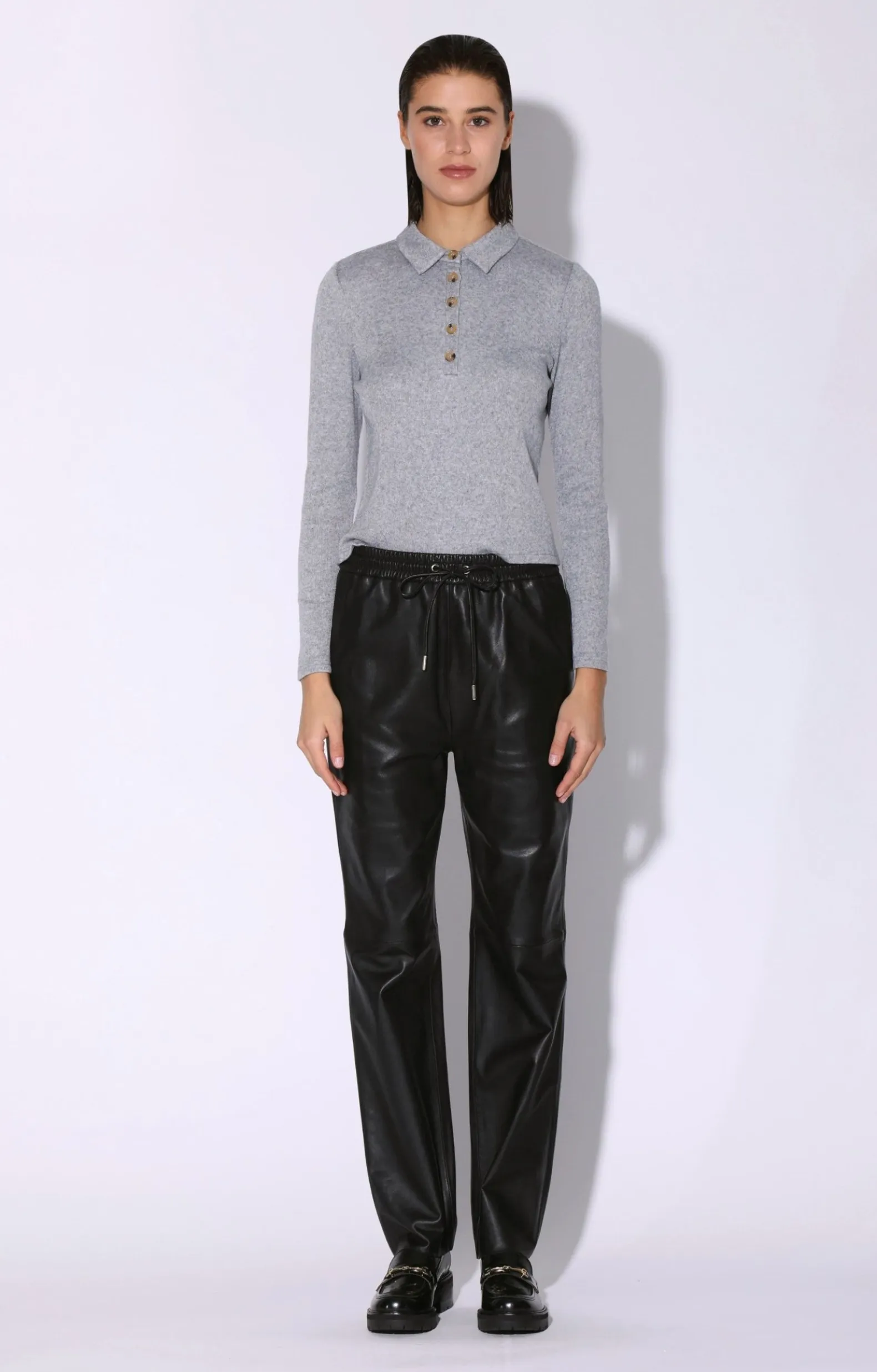Achieve Preppy Chic With Our Ressie Top! This Collar Button Up Henly In Soft Knit Goes Great With Our Leather Bottoms And Tweed Skirts!
